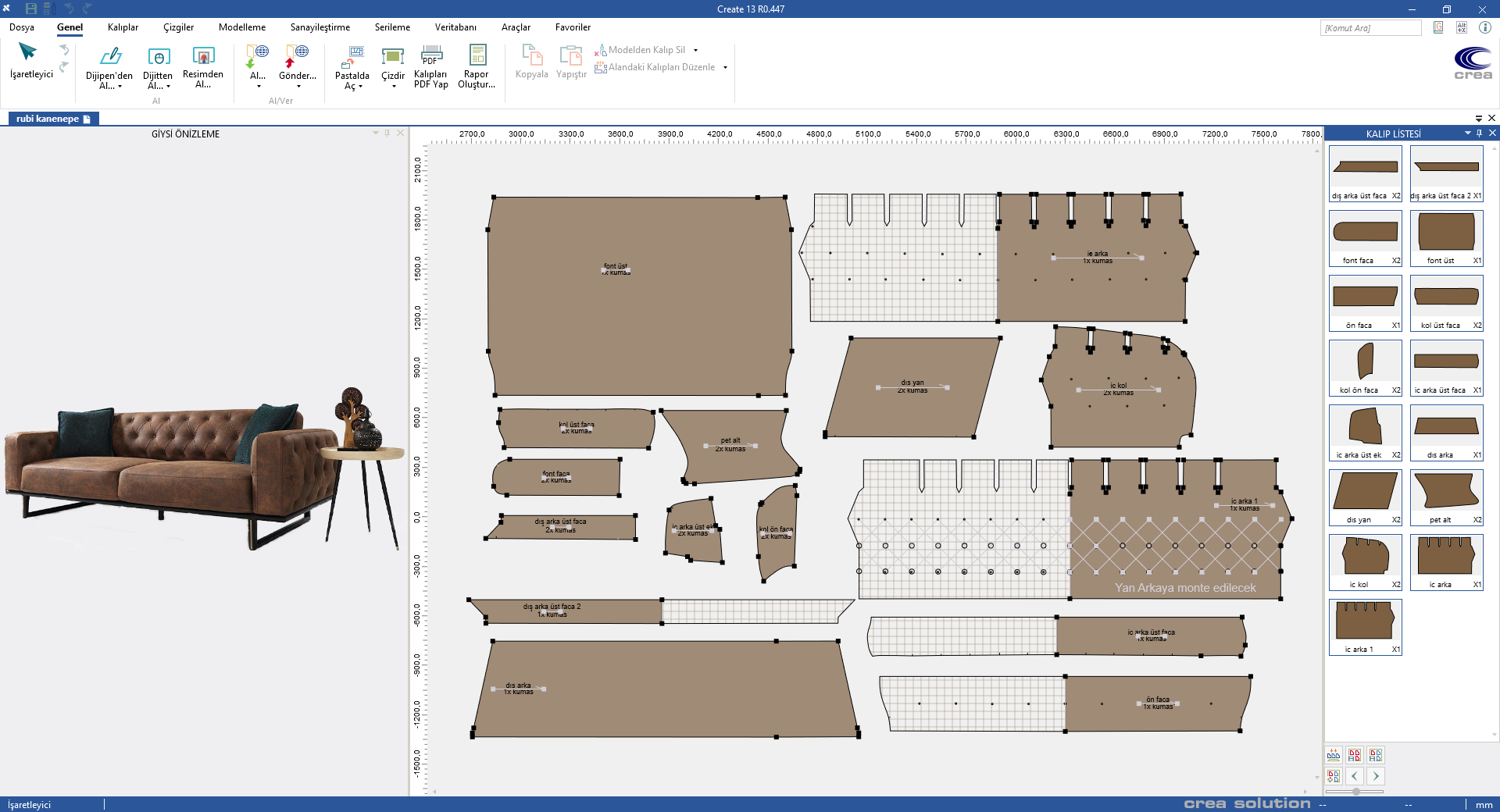 Create, Mobilya Döşeme Kalıplarını oluşturmak ve düzenlemek için Crea Türkiyen'in Kalıp Hazırlama uygulamasıdır .